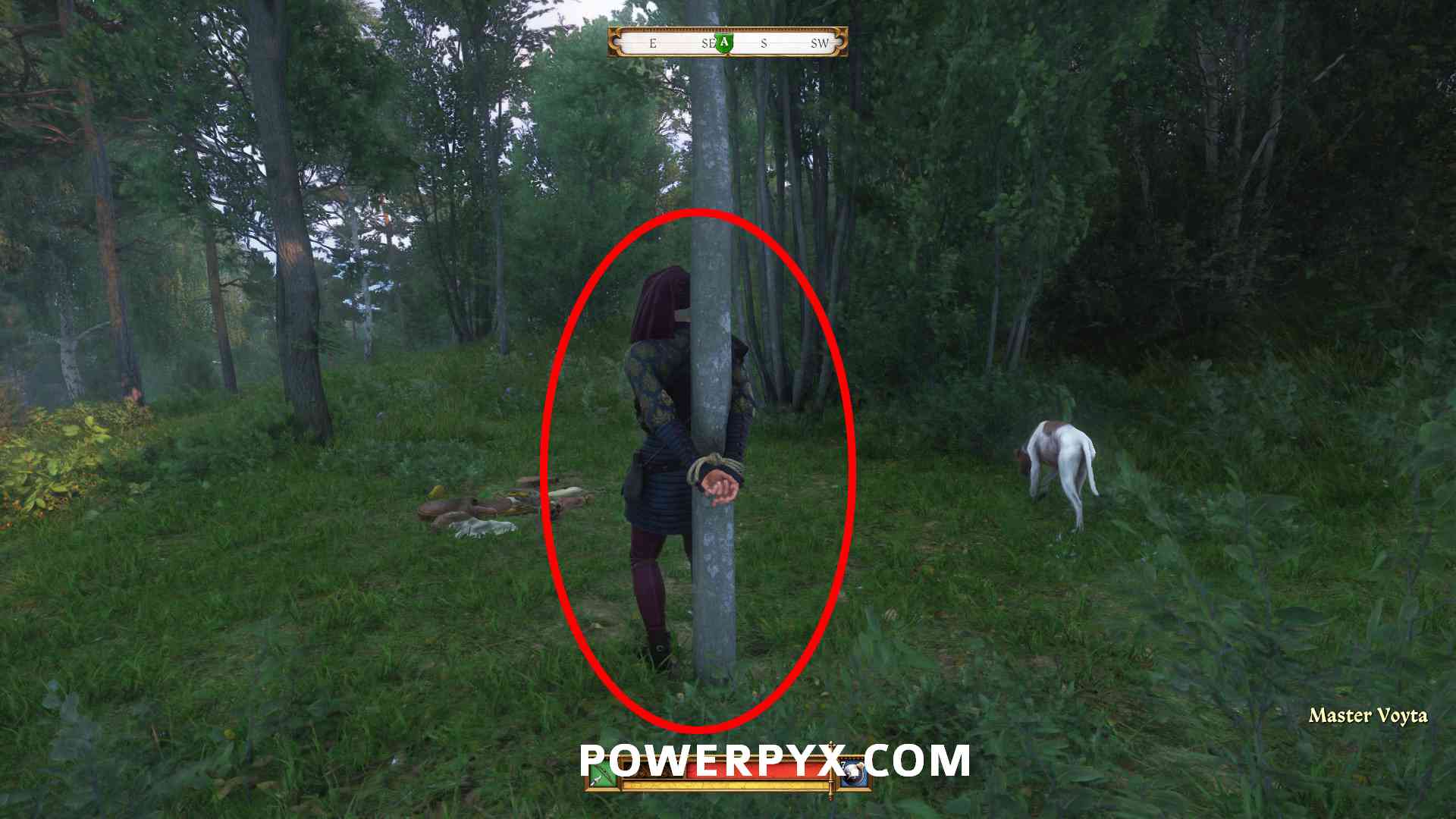 There you will find a man tied to a tree at the edge of the forest. Approach him for a cutscene, he wants you to cut him loose, but you attract the attention of two hungry wolves.