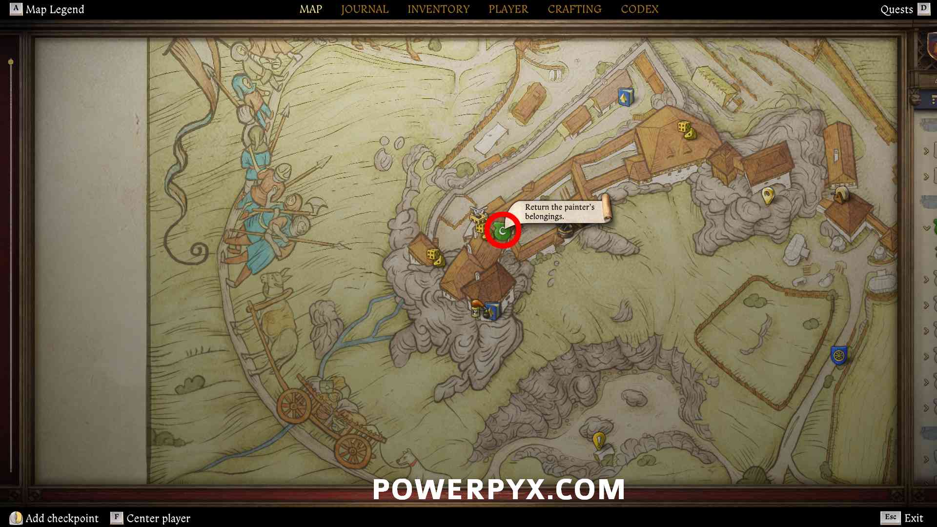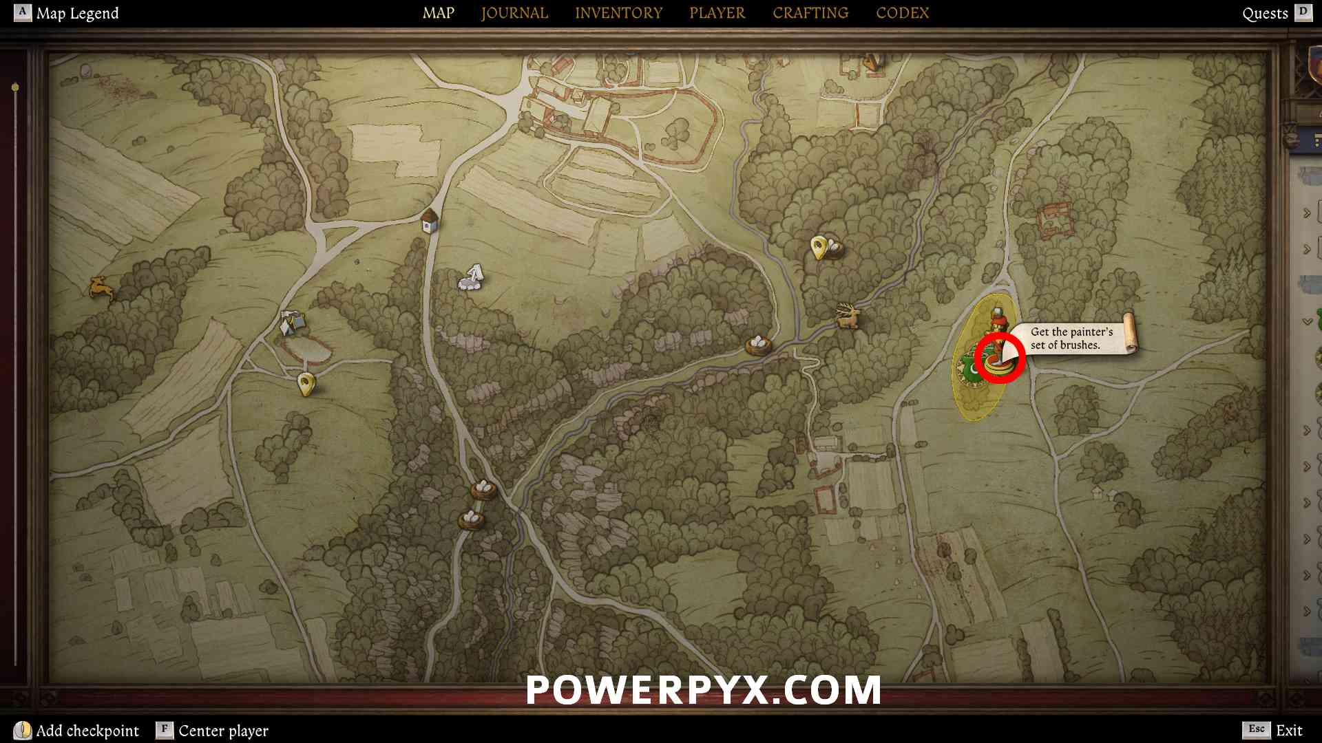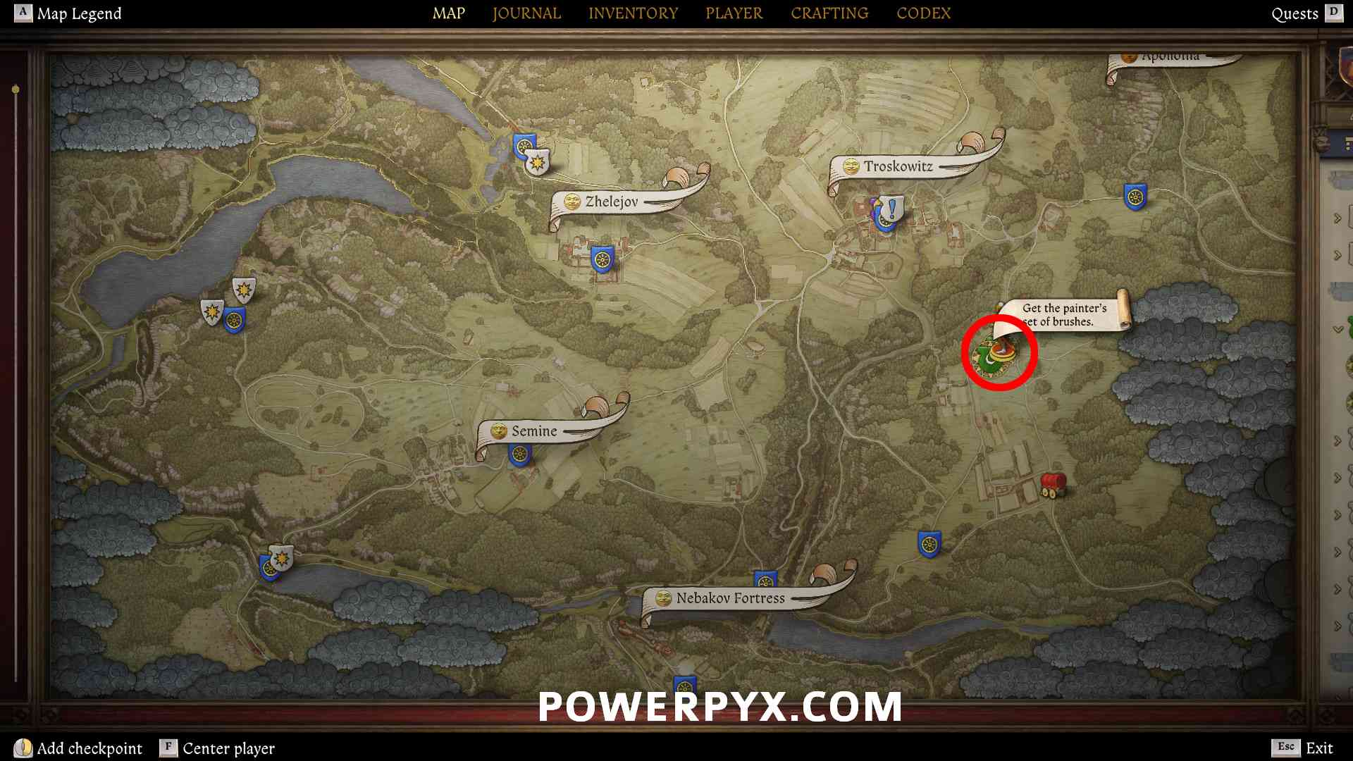 Fast travel back to Trosky Castle and return to the painter, he will be marked. He’s typically in the west-wing of Trosky Castle, upstairs, in the room connected to the scribe’s office.