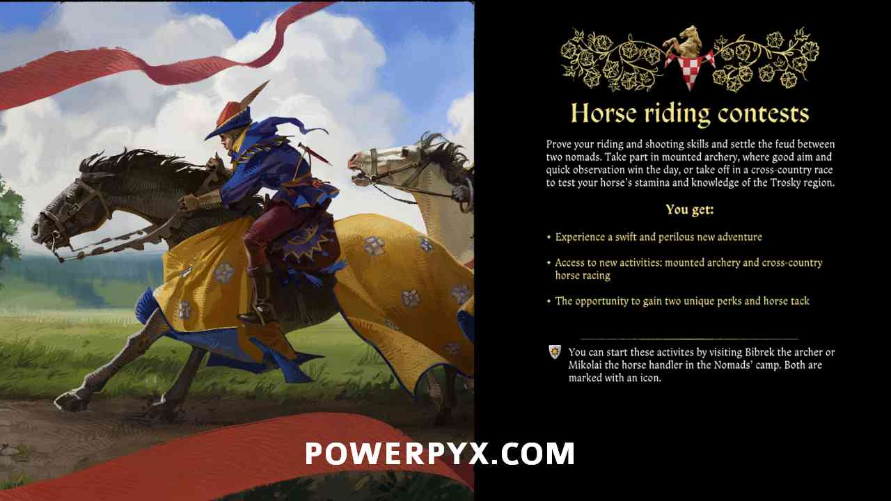 - Horse Riding Contests and Horse Archery Contests at the Nomad Camp in Trosky Region (marked on map as ‘New Activity’ by a gray shield icon)