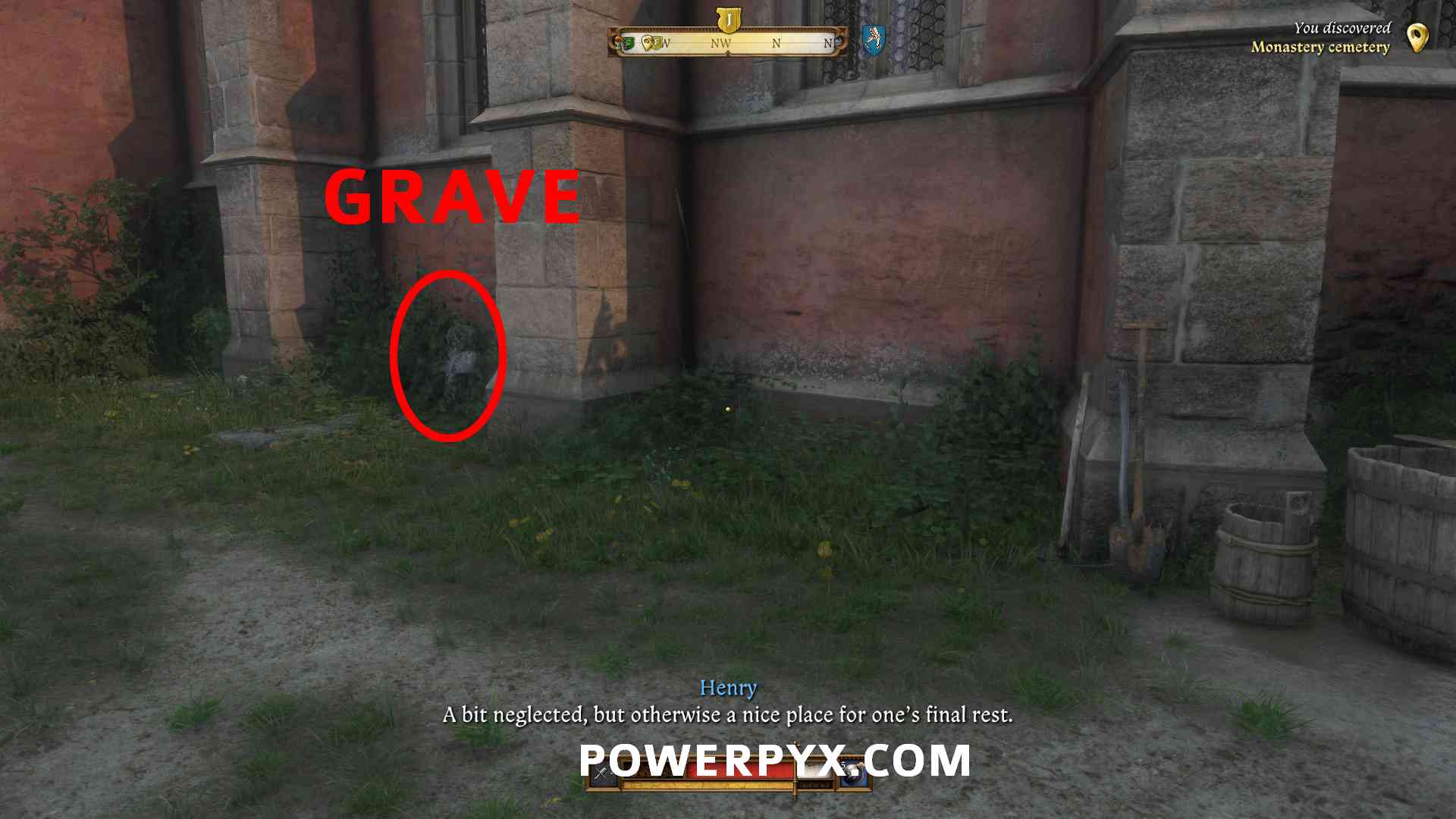 - Search the graveyard near the infirmary church