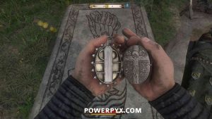 Henry will point out there’s an inescutcheon on it. This is mandatory to find the relic later.