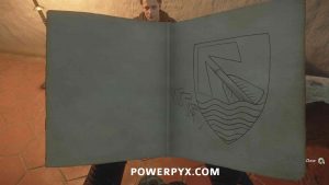 Go to inventory > Books > Maps > Boleslav Bavor’s coat of arms sketch. Remember this symbol, it looks like an arrow pointing up to the left.
