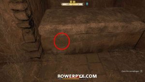 Climb over the hole in the left wall that you made earlier (Bug warning: if Henry just jumps against the wall and doesn’t climb through, try rebooting the game). Go through the narrow tunnel, as soon as you exit the tunnel open the first sarcophagus on the left. This is Boleslav Bavor’s tomb. It has the arrow icon at the bottom of it. It’s the tomb straight across from the exit.