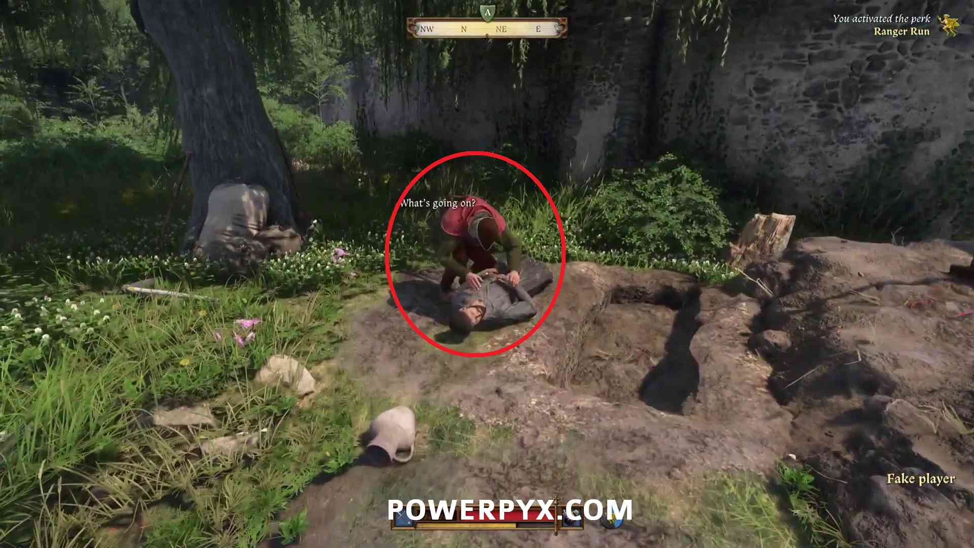 Follow the marker named “A” north of Kuttenberg. You will find a thief below a tree looting a body, and you have to fight him.