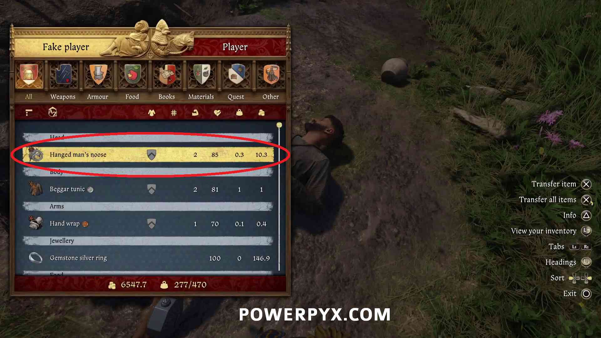 After defeating the thief, loot the body and get the Hanged man’s noose.