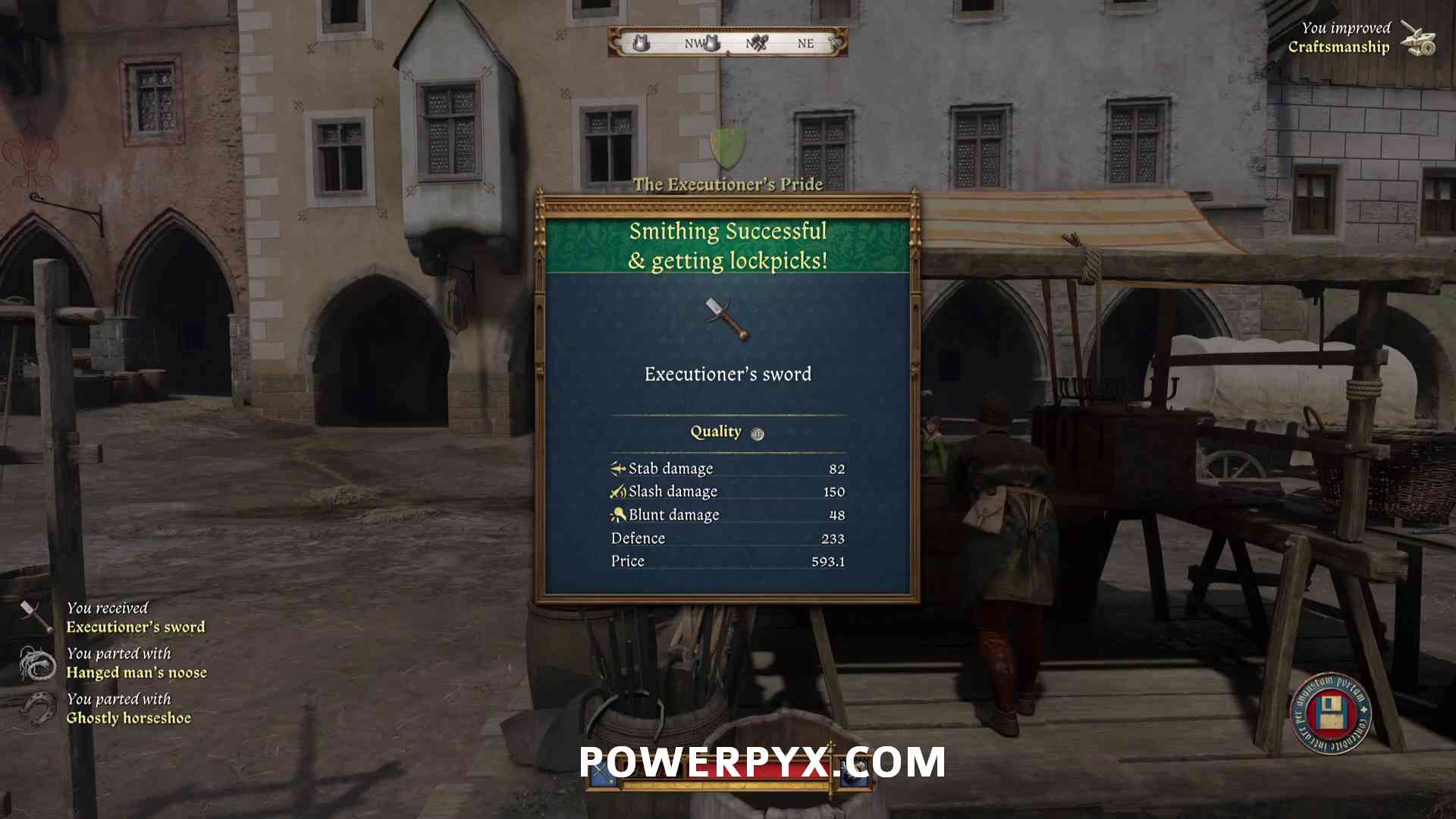 - Quest Description: Heinz, Kuttenberg’s executioner, has been down on his luck lately, and wants to break the curse by having a new executioner’s sword made using various lucky charms. Naturally, I am to find them all and then forge the blade.