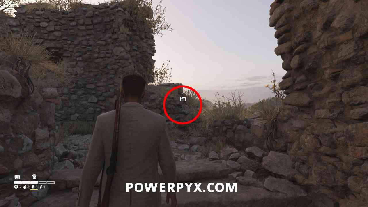 Fast travel to “San Celeste” marker on the map. When you spawn, turn left, follow the path for about 30 meters/yards and go up the first stairs on the left. This leads to the ruins. In here you can find a second staircase leading to the top of the ruins where the photo is.