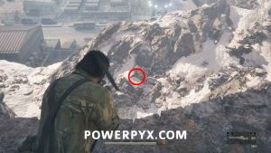 Ga-Ko #38 – Behind the 2nd highest AA gun near the top of the area, above a sheet of metal on a slope, quite hard to see at first. It has white camo and blends in with the white snowy rocks. Looks like a round rock.