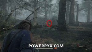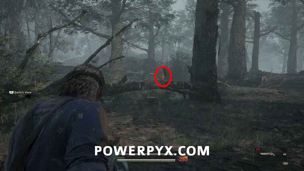 Ga-Ko #60 – Keep looking in the direction you’re driving towards (to the front of your motorbike, not behind you where enemies are). Aim at a slightly 30° angle to the left, just a little bit ahead of Eva’s head. Roughly halfway through the area this will sit on a tree branch to the left. It has some camo on it.