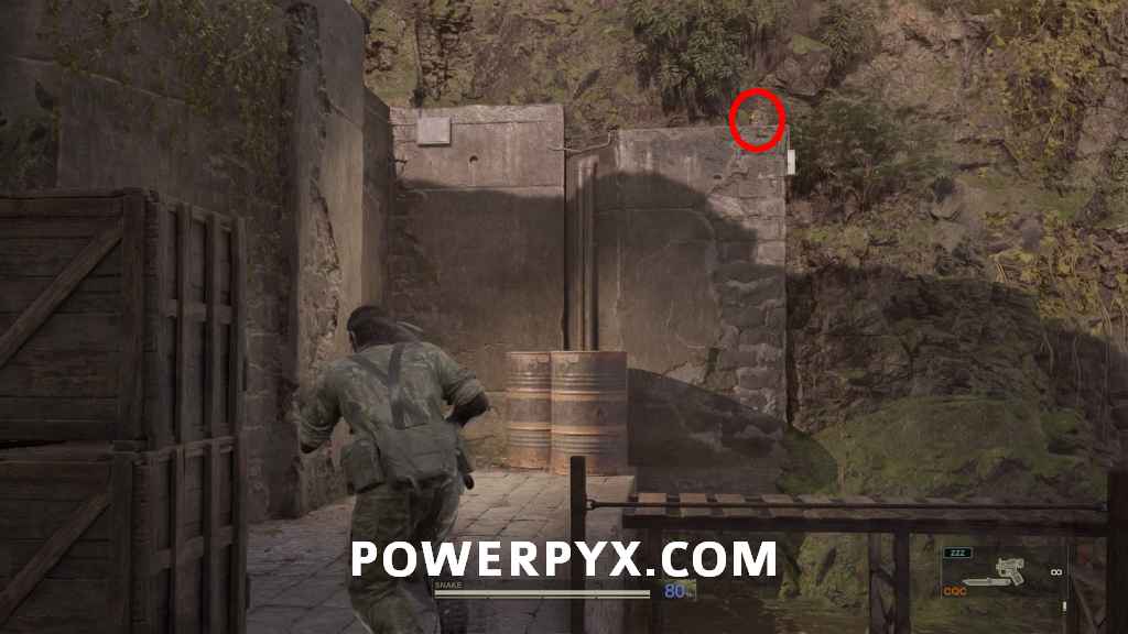 Ga-Ko #21 – To the right of the kerotan, next to the barbed wire on the right of the same floodgate. It has full camo and blends in with the rocks.