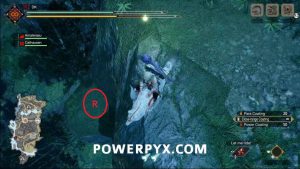 On the cliff between areas 2 and 5 you can find a wooden shrine. Drop down to the ledge behind the shrine to find it.