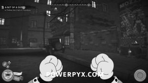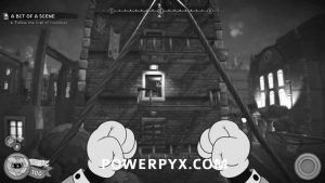 After going down the stairs at the start of the level, you’ll see wooden beams going up the buildings on the right. Jump up the wooden beams until you reach an open window where you can enter the building where the schematic is.