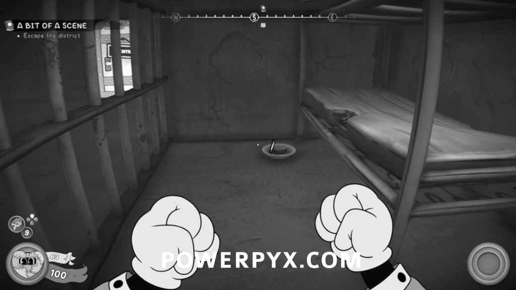 From the previous collectible, jump over the next fence and shoot the explosive to break the wall and go back into the jail cells. Head into the room on the left and pick up the jail key, then unlock the jail cell on the far left with the tally marks. The collectible will be in the bowl.