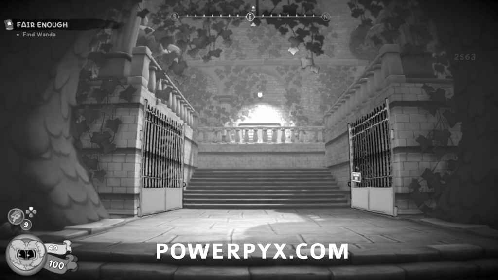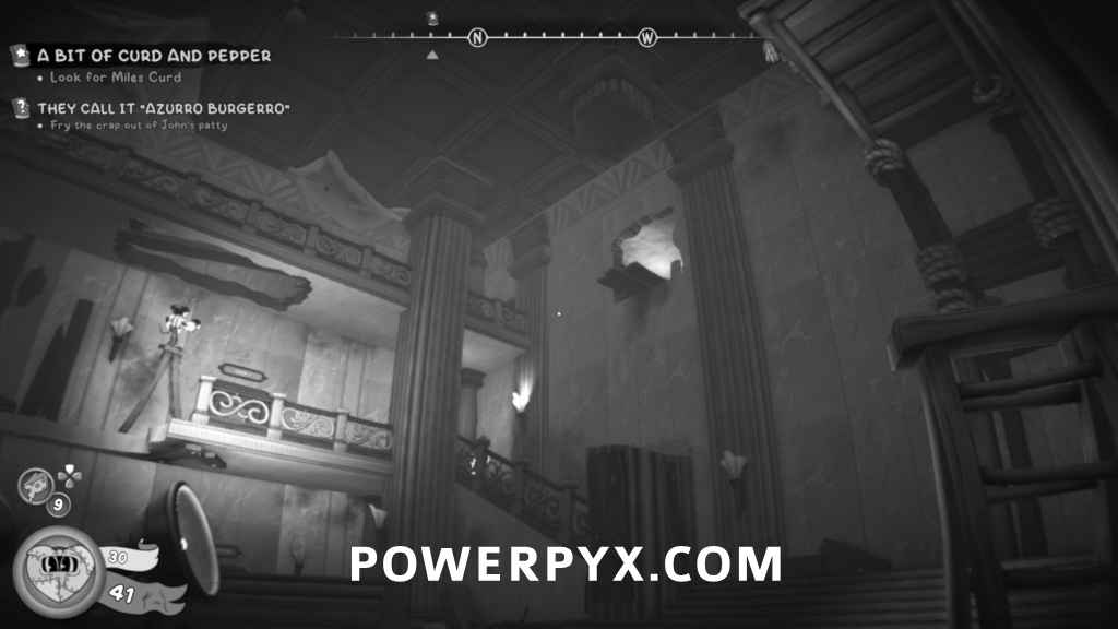 From the previous collectible, turn left and go onto the balcony. Go to the end and double jump around the blockage to get to the other side of the balcony where the collectible will be in a popcorn basket.