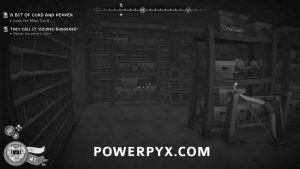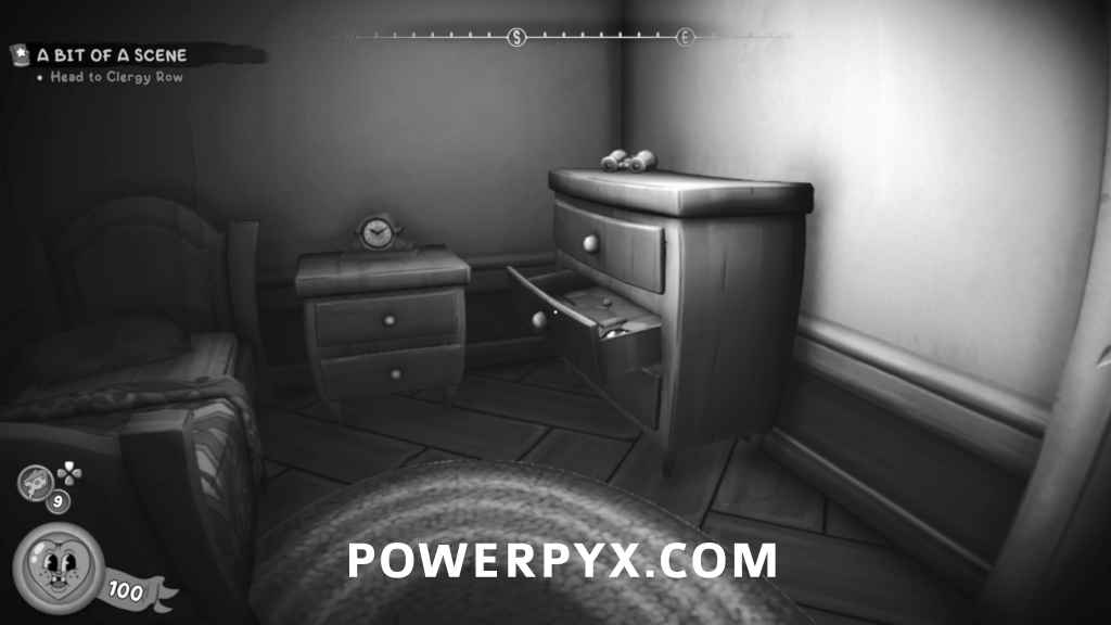 From the previous collectible, interact with the piano and press the keys “A C E G” in that order. You’ll know you did it right when Jack makes a Dark Souls 1 reference. Afterwards, turn around and exit the room and you’ll be back in the room where you talked to the Old Shrew and the dresser will open. Go inside and the collectible is pinned to the wall. The schematic will also be in the safe.