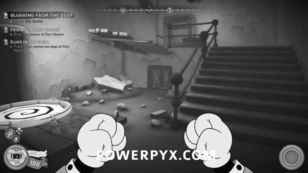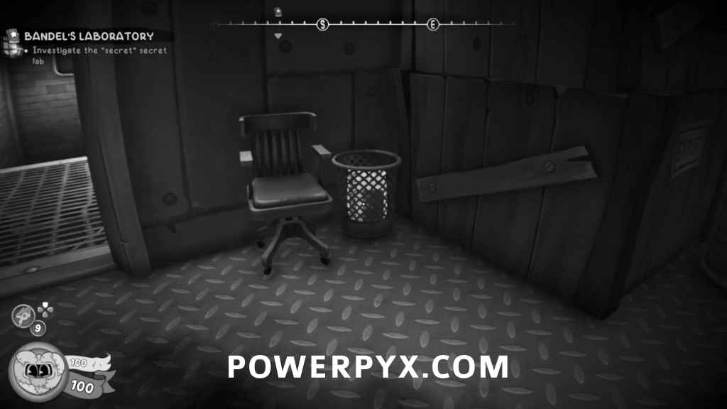 After getting the Jar-Head gun, go through the door and you’ll see a warp pipe open. Go through the warp pipe and the collectible will be on the wheelchair. Afterwards, climb up the ladder and the schematic will be on a table by the door.