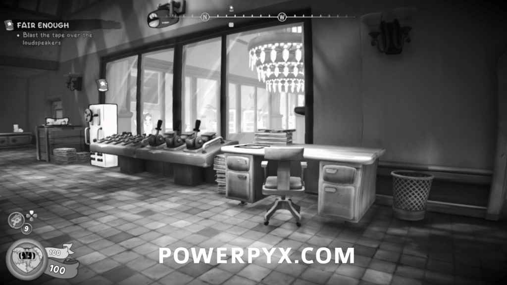 From the previous collectible, go back into the main hall, then head through the door to the office. Go through the hole in the wall to the left and jump over the desk to find the collectible.