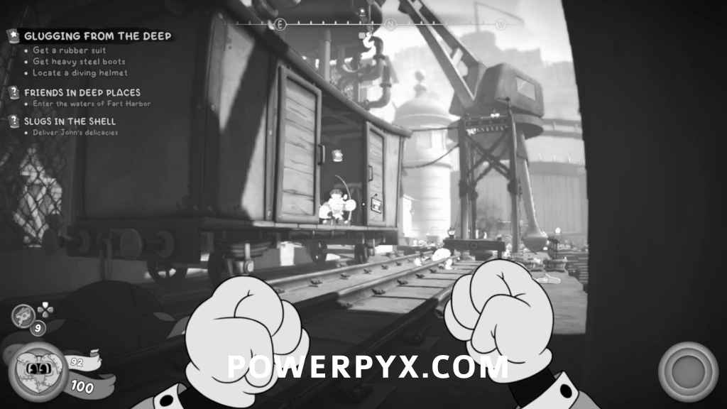 After reaching the first train, turn around and pick up the Ticket Booth key off the crate. Follow the train tracks and unlock the door on the right and head to the end of the path. The collectible will be on a table in the lit up room, and the schematic will be on the bunk bed in the room on the left.