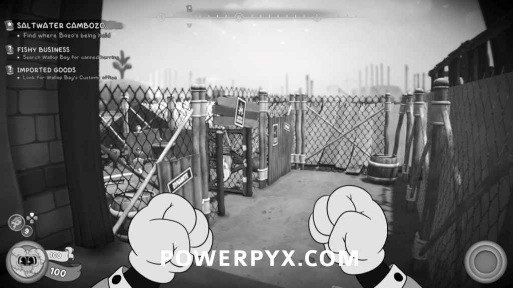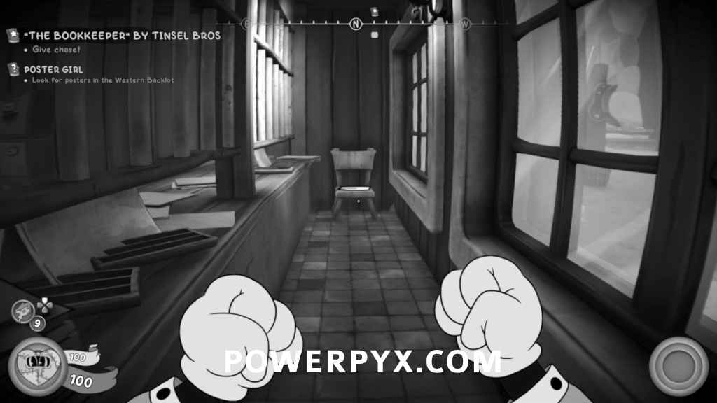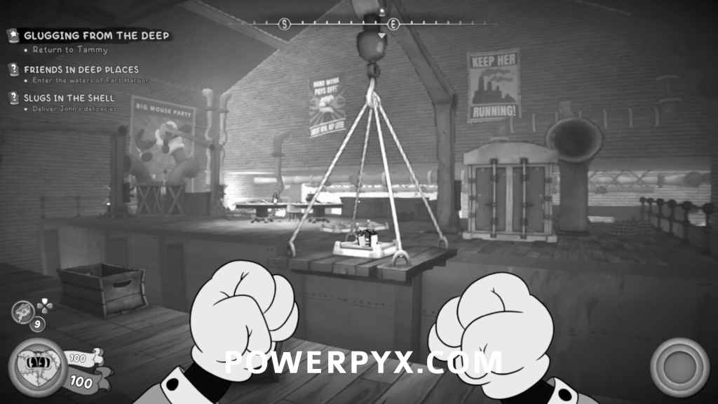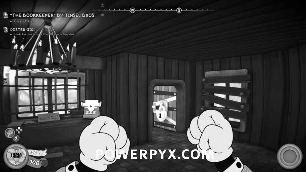 After picking up the Bookkeeper’s Letter, look to the left and you’ll see a safe in the distance. Go up to the wooden platforms and shoot the targets to lower the hook to swing across to the safe with the schematic inside.