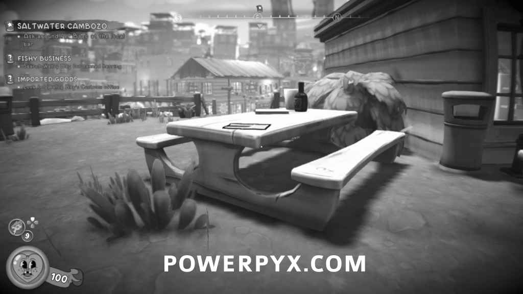 At the start of the mission, the collectible will be on one of the picnic tables by the stairs.