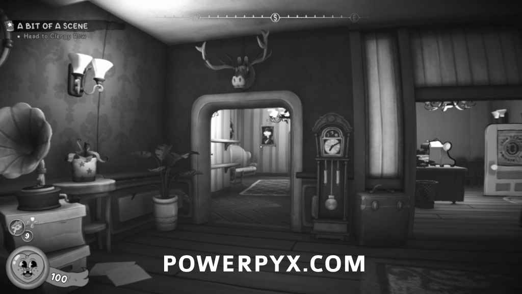 After talking to the Old Shrew, go into the next room then head through the door leading to the music room. The collectible will be on the piano.