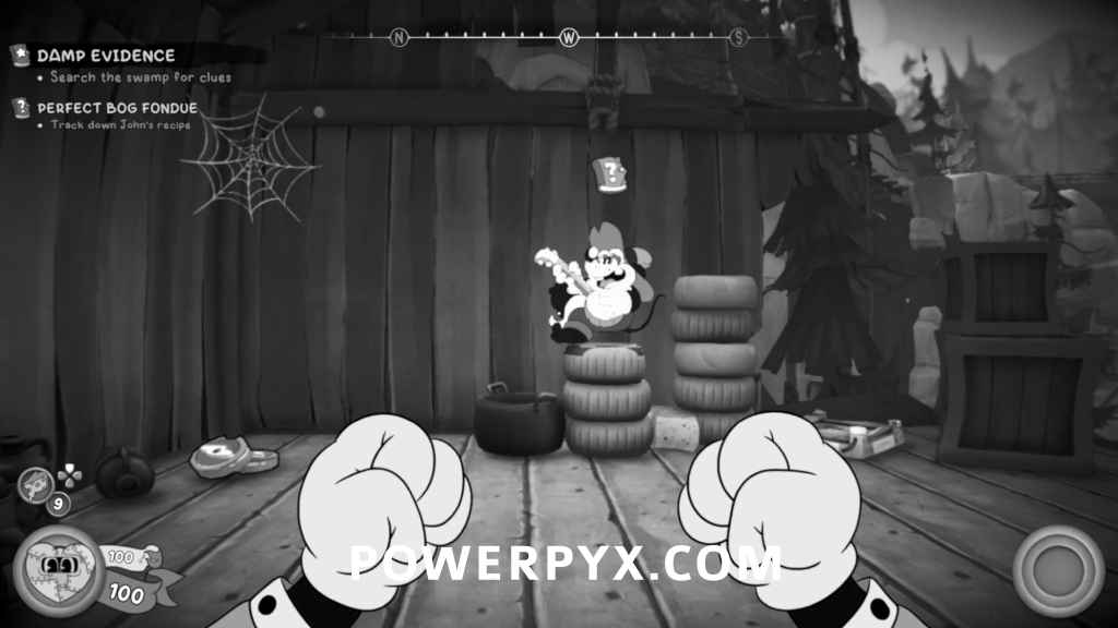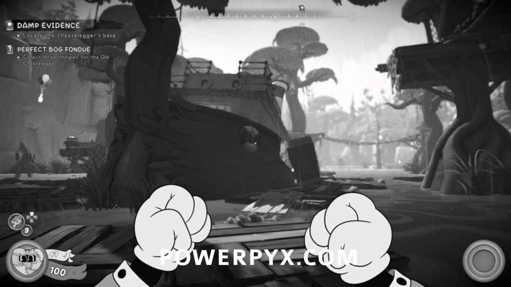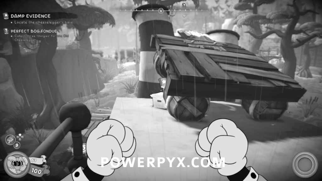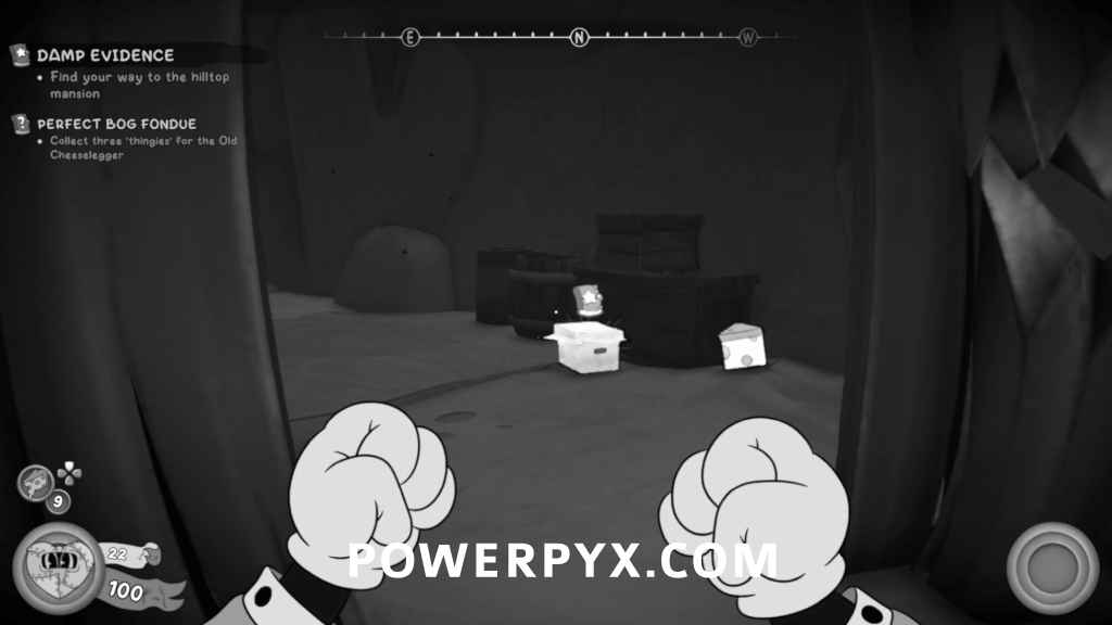 After exiting the mine, enter the shack to the left and talk to the Old Cheeselegger. You’ll need to grab him 3 “thingies” across the mission.