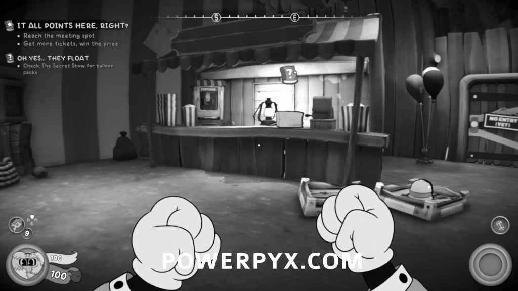 After opening the door that requires 4 Secret Show tickets to open, go to the other side of the area to the left and you’ll see a booth there where you can buy the Deflated Balloons for 25 coins.
