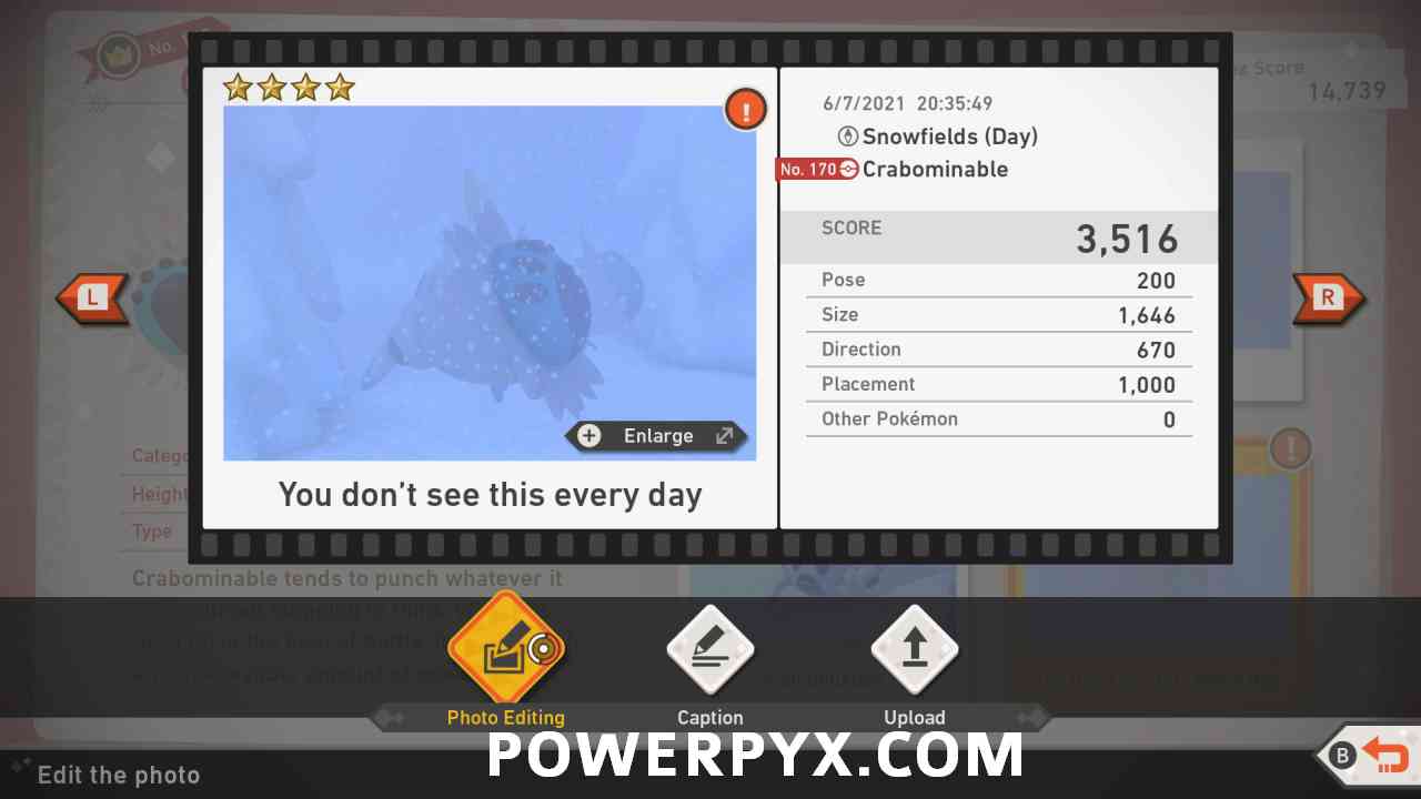 Crabominable All Star Photos (1 Stars, 2 Stars, 3 Stars, 4 Stars): This explains where and how to take all Crabominable Star Photos.