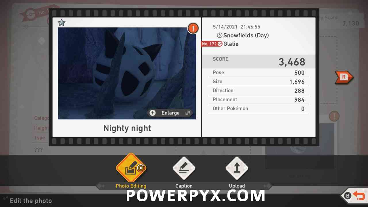 Obtained by taking a picture of Glalie while it is being hit by Froslass’ attack for its 4 star picture.