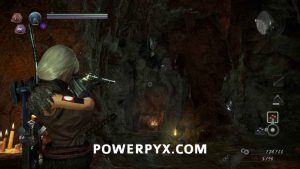 Following the path you will enter a cave that goes left and right. Going left where the Yamanba takes you down through a bunch of human enemies, but there are items to get going right so go to the right to progress. Continue along the path without turning to get to where a Gaki is standing behind a boulder. Kill it here so you don’t have it pushing the boulder onto you and search the nearby chest. At this point if you want you can go down the cliff path and kill all the humans, then stop when you get to the Darkness Realm and turn around and come back to the cave. When you do go back and enter the other side path to the large circular room. Entering this room you can see two Nure-Onna, one sitting still and one circling the left part of the area, and also a Gaki lying down behind the boxes on the right. Once they are dead you can search this area.