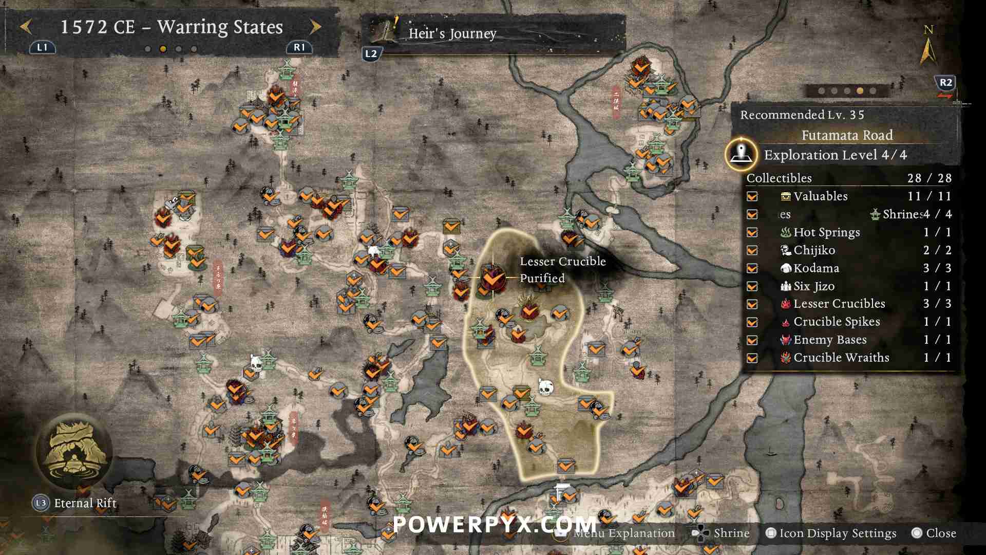 Nioh 3 contains 23 Lesser Crucible Locations. Finding all Lesser Crucibles unlocks the Lesser Crucible Eradicator trophy & achievement.
