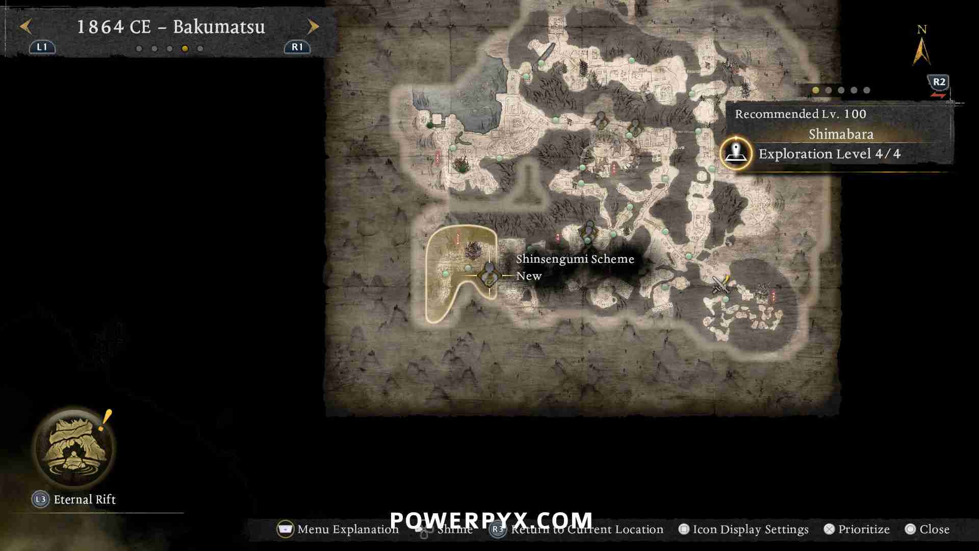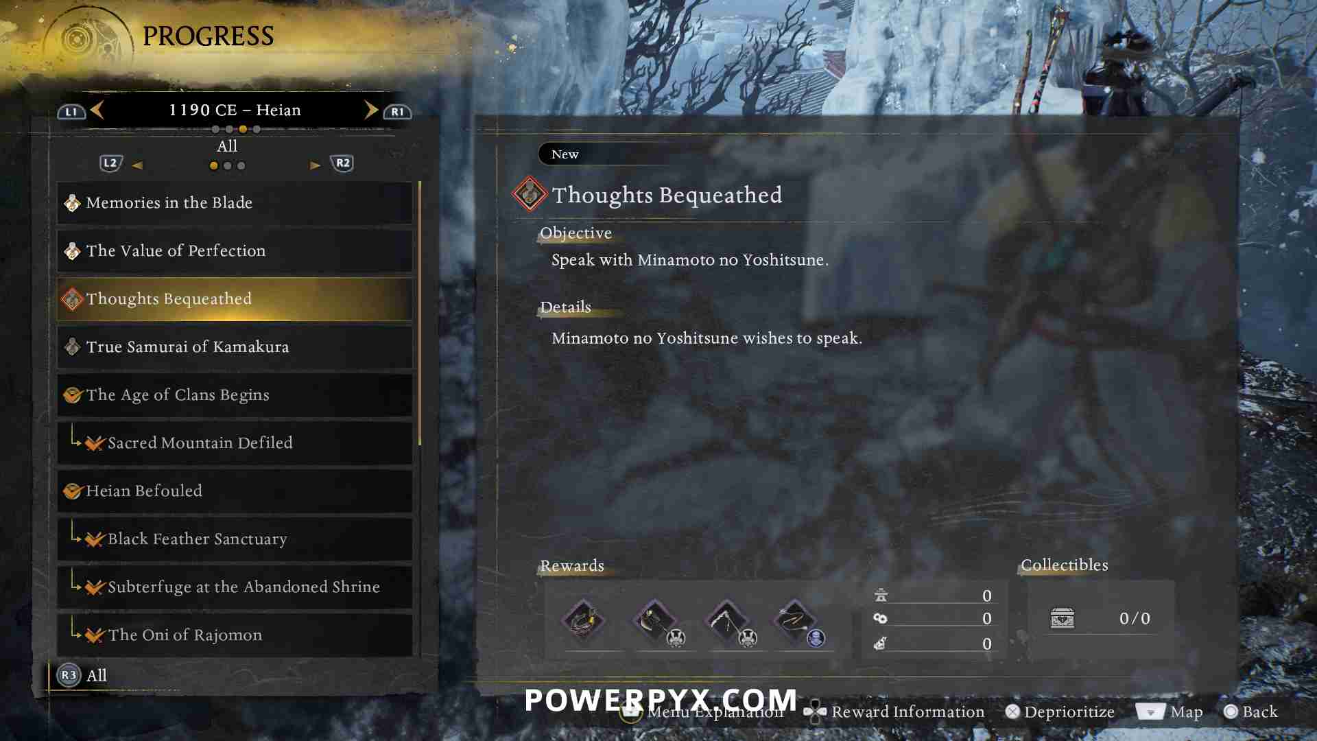 Starts automatically after Main Mission: “Frozen City, Blazing Tree”, after defeating the boss “Minamoto no Yoritomo” and reaching Main Region 3: Antiquity. Then return to Main Region 2: Heian and it will be marked in Rokuhara sub-region.