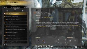 Kamo Village: This is a secret unmarked myth. If you’re missing a myth it’s likely to be this one or Seeking Rare Yokai. You must interact with a corpse that has black mist around it to get a picture scroll, then two enemies spawn, defeat them and a ghost appears that gives you the myth. From Shrine: Path of Koyama (the first shrine in Kamo Village sub-region), slide down the path snowy path, then use the first Spirit Vein on the left to jump up the hill (the spirit for this is an automatic story unlock). At the top of this hill follow the path until you reach the corpse with the black mist and interact with it, just before the second Spirit Vein that leads even further up. Defeat the two enemies and speak with the ghost that appears where the corpse was. The rest of the objectives will be marked when you track this myth from the Progress Menu. Also see Yokai Horde Picture Scroll Walkthrough.