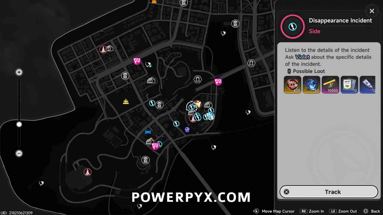 - Quest Description: Disappearance Incident – Listen to the details of the incident. Ask Violet about the specific details of the incident.