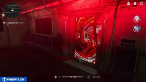 Approach some floating electronics surrounded by a red aura to progress.