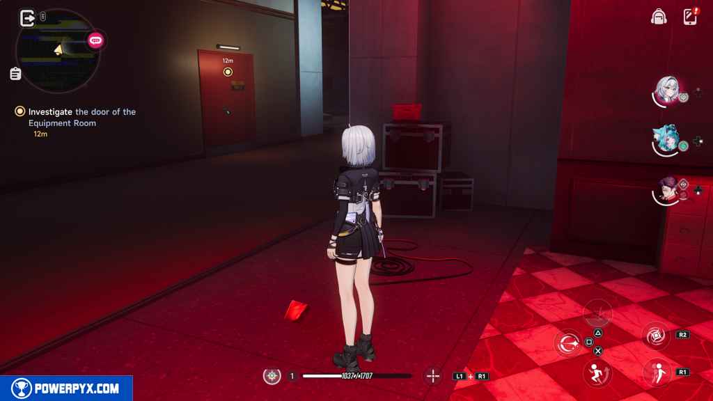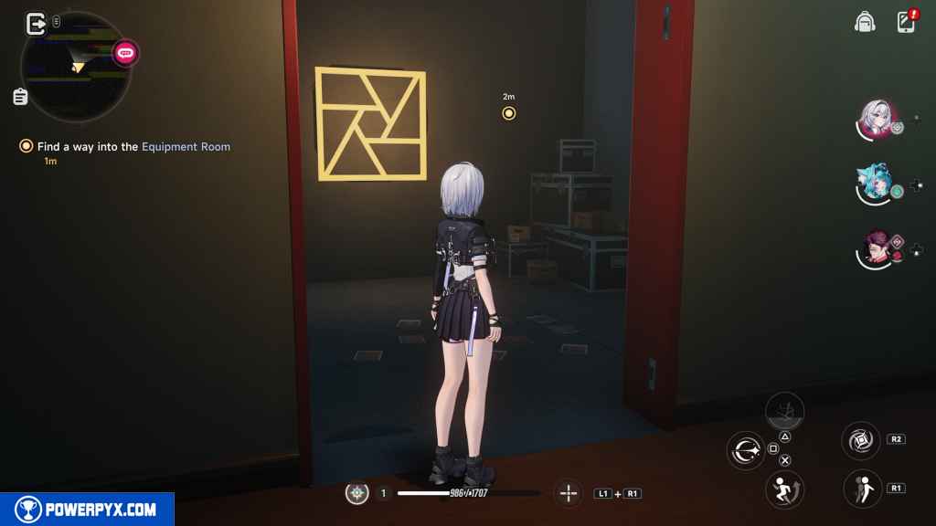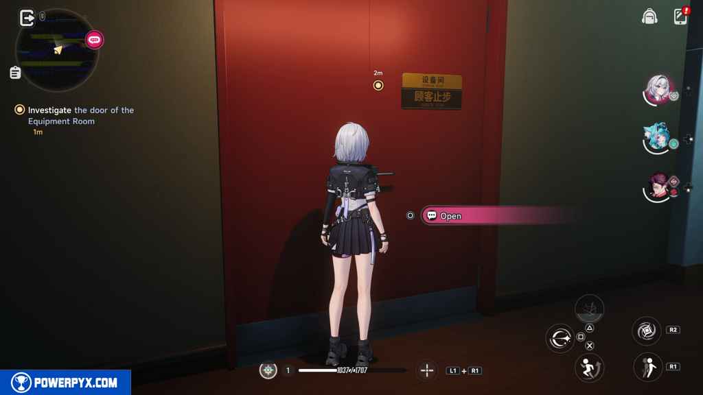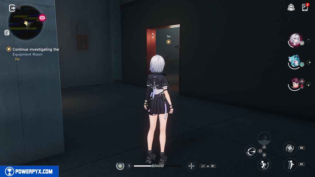 Just wait at the door until the door disappears. Enter the Equipment Room.