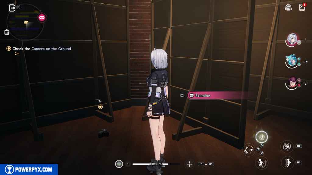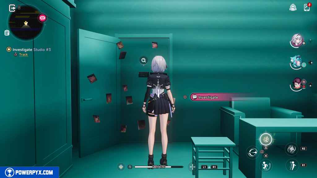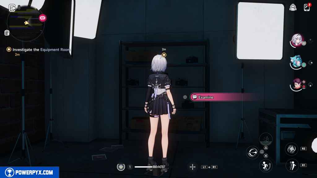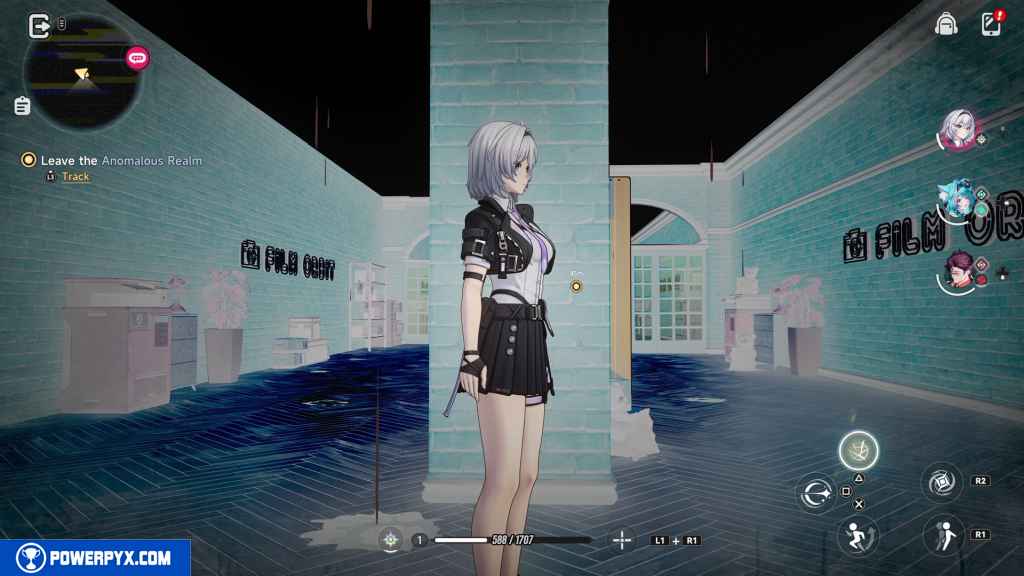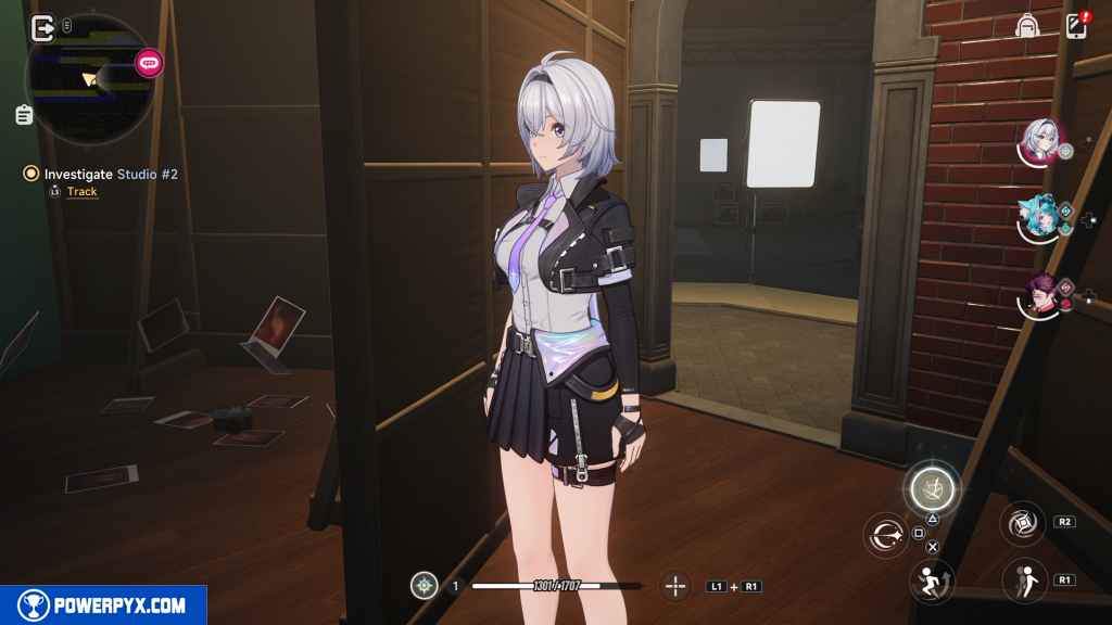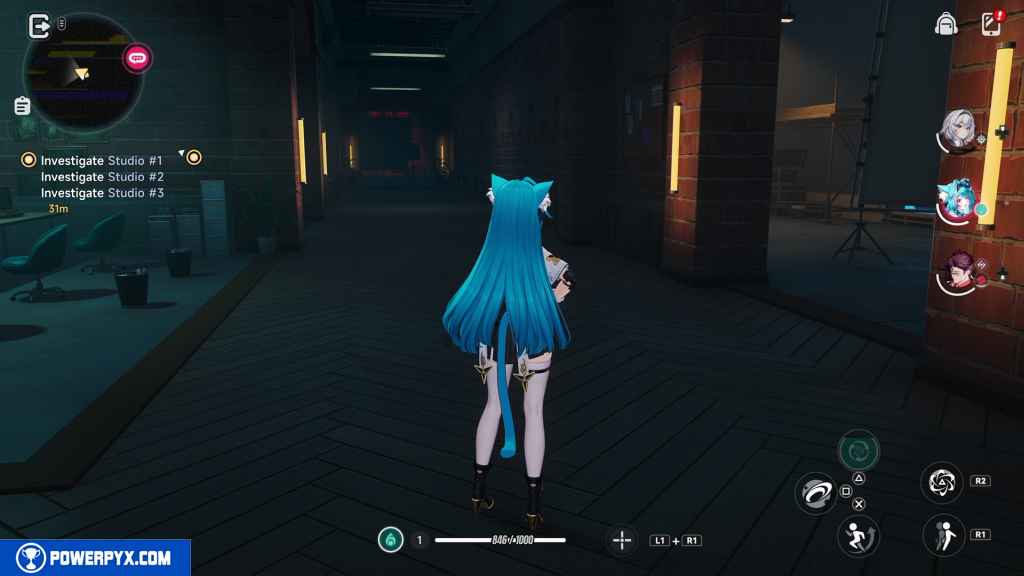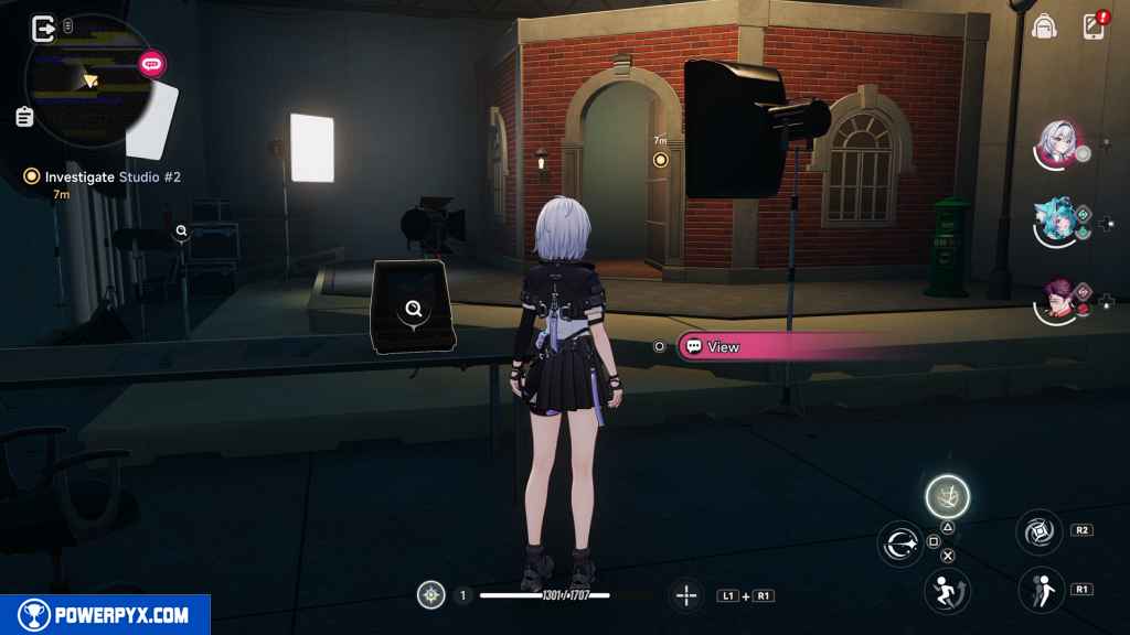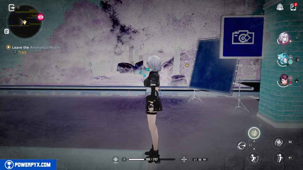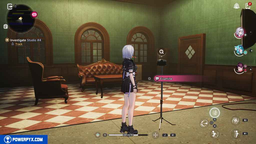 Go around the left of the wall behind you. Step into the Makeup Area to progress.