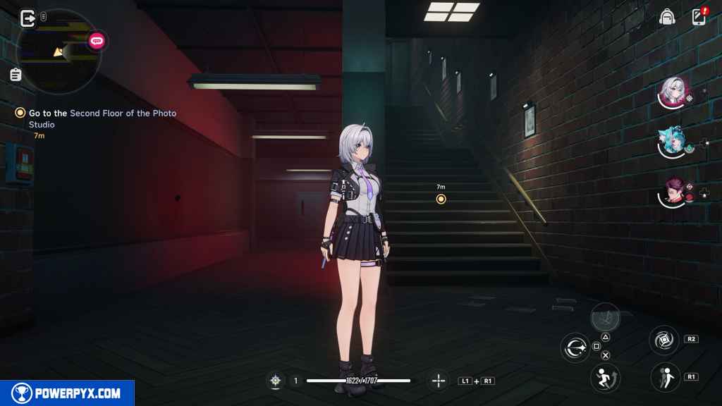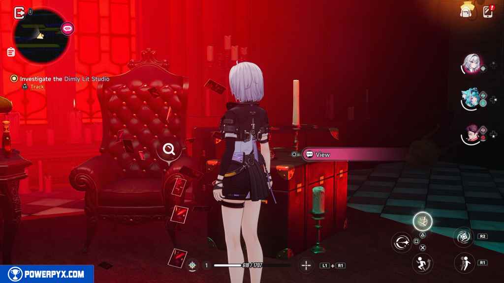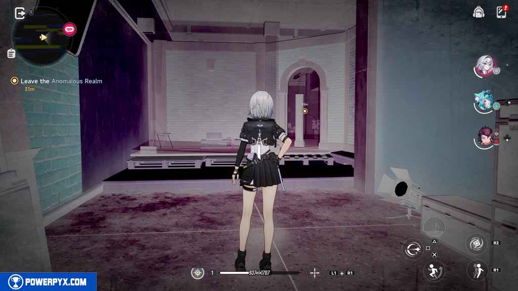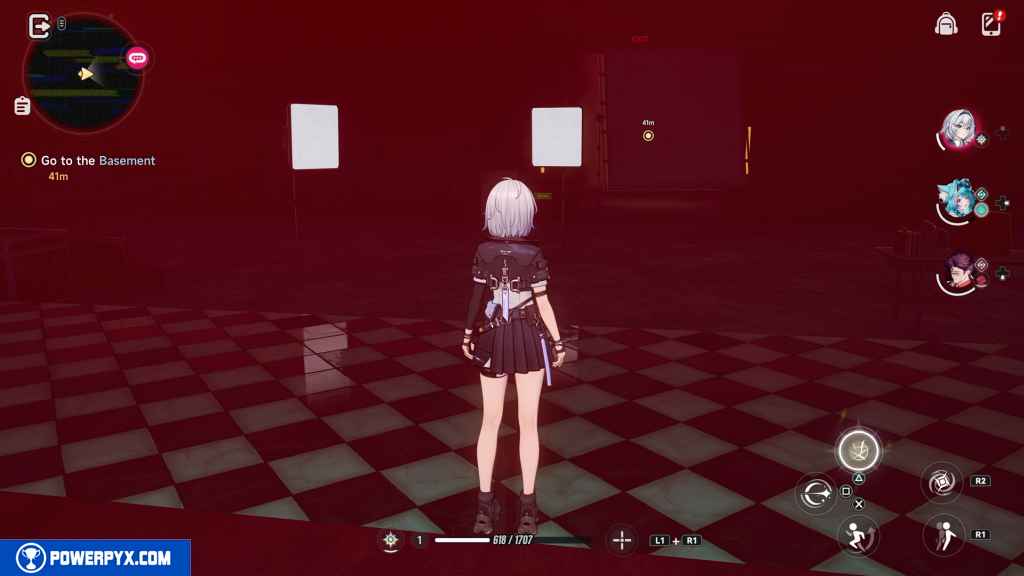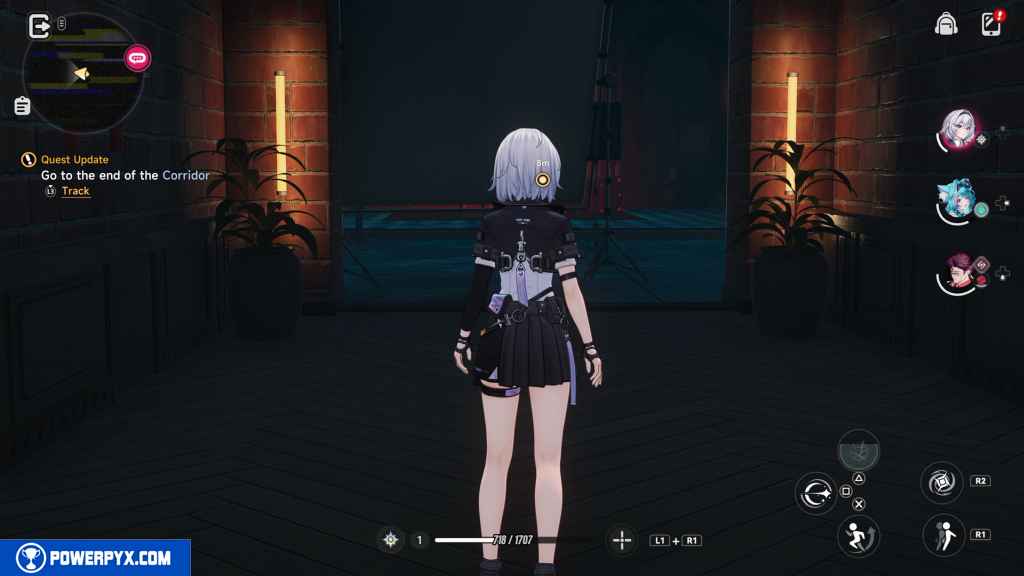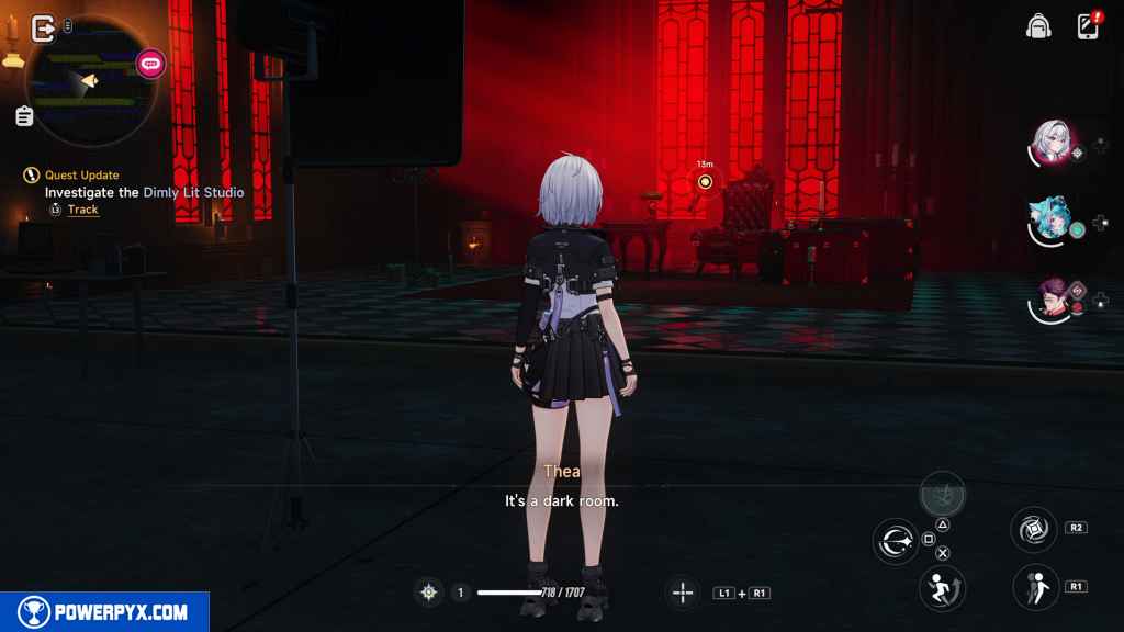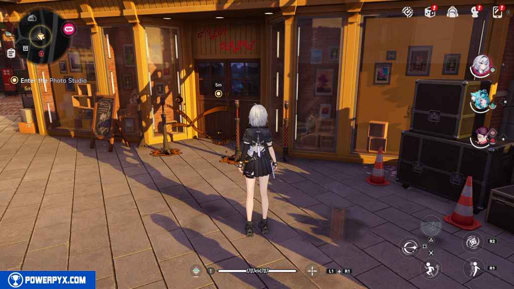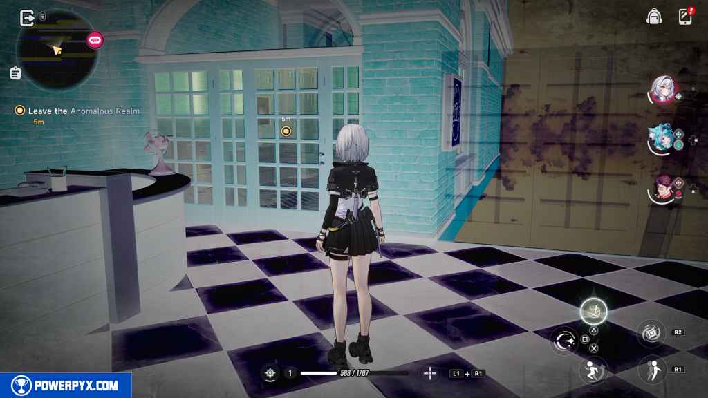 Go around the left of the wall behind you. Step into the Makeup Area to progress.