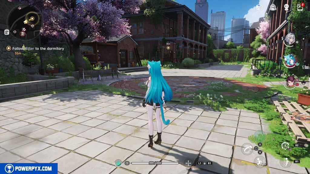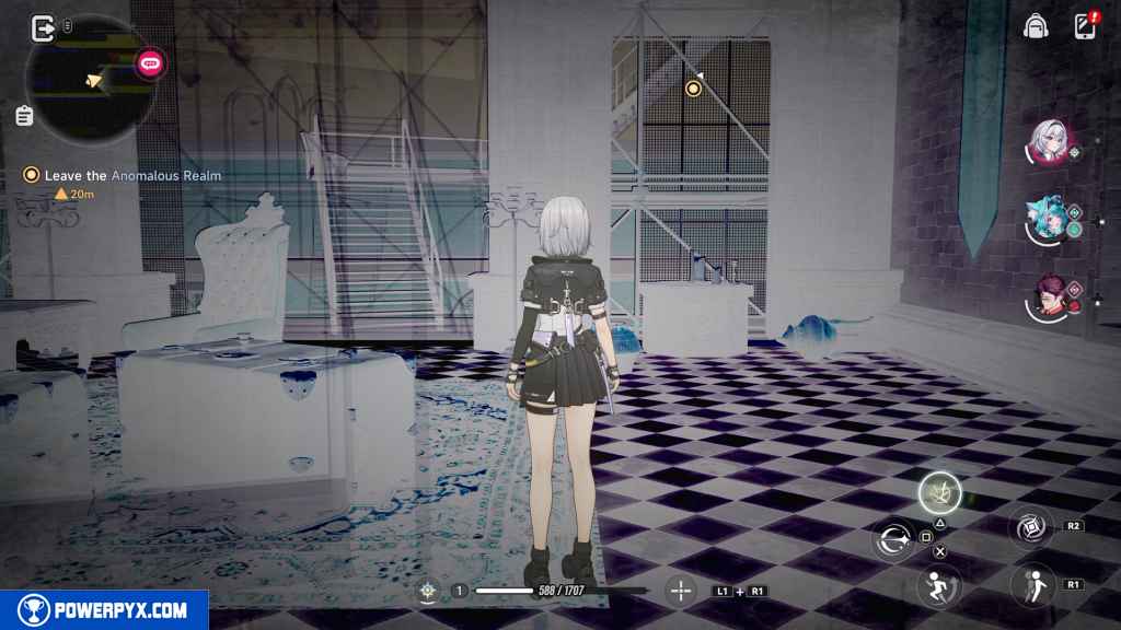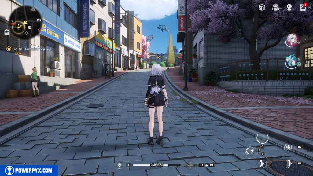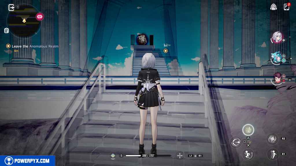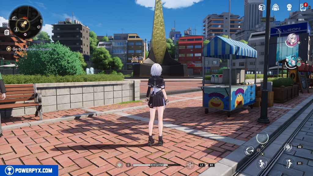 In the plaza, approach the pillar in the middle of the clearing to progress.