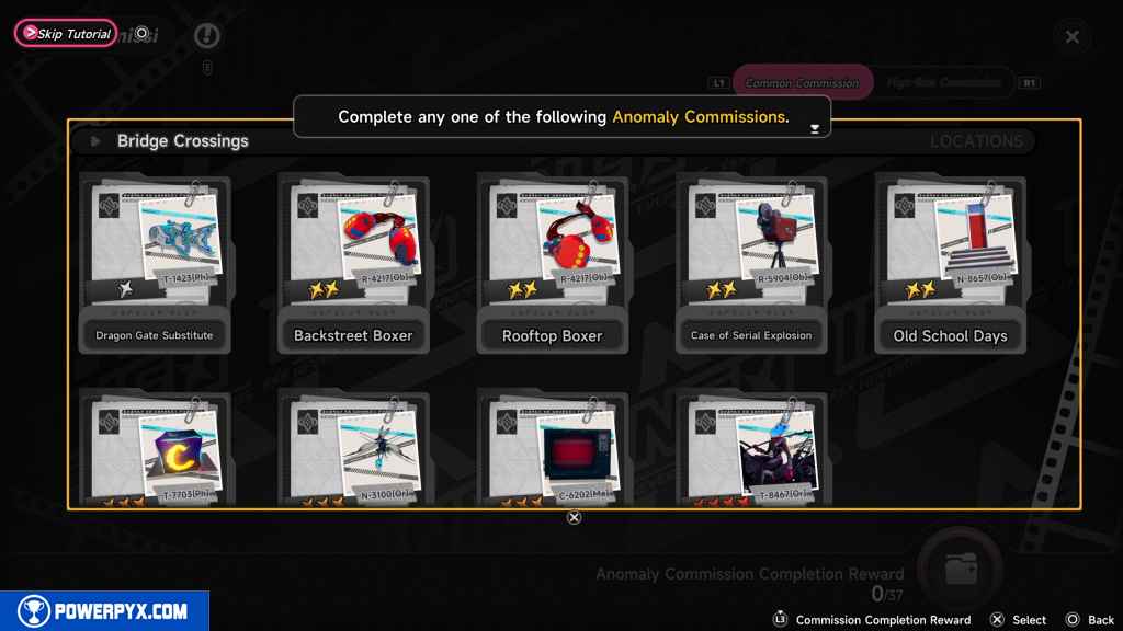 This unlocks Anomaly Commissions. These commissions are bosses you can take out for extra experience and resources, and especially Arcs which are passive stat buffs. Back out of the menu to finish the tutorial.