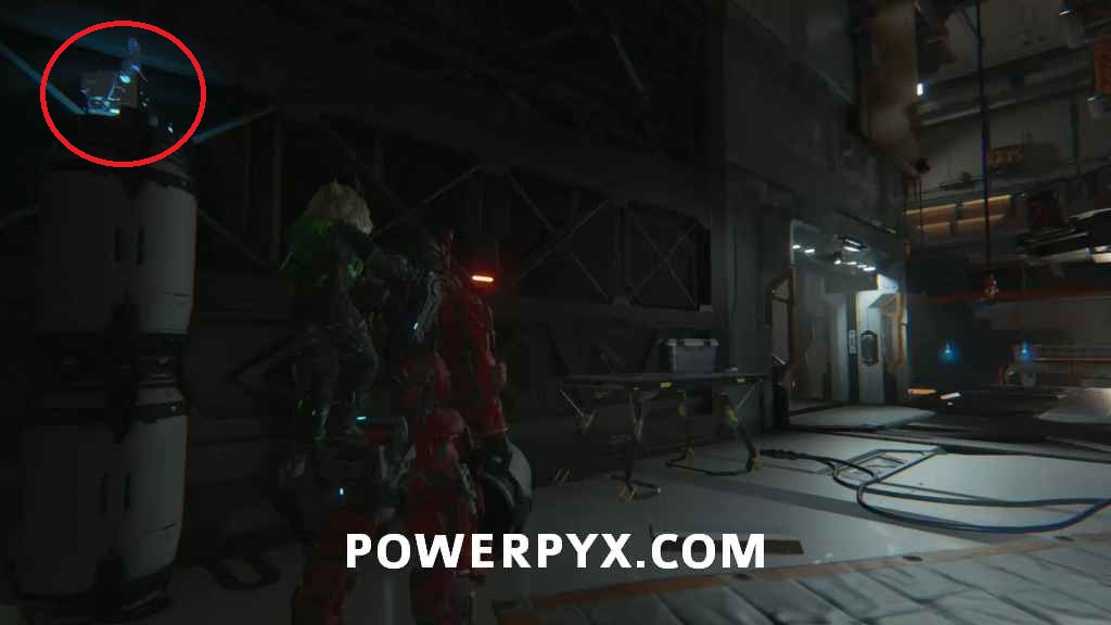 Mini Cabin 11 – Inside a room where you must push boxes with hacking to create some stairs climbing up, this will be on a pipe near the ceiling, directly above where you enter the room.
