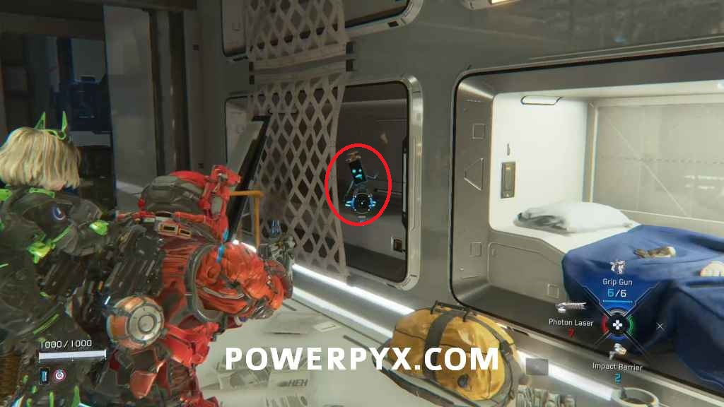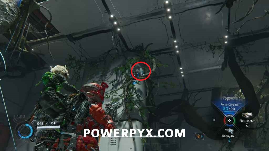 Mini Cabin 7 – You will have a choice of taking two paths, to the left and right. This is down the right path. In the room with the terminal which will grow the tree for you to use as a platform, you can find it on a tree branch above the mentioned terminal.