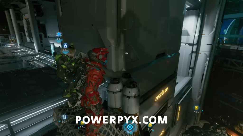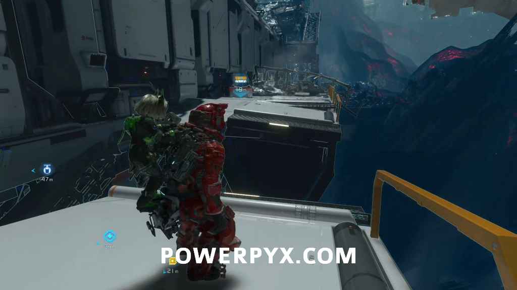 Safe Box 10 + Safe Box 11 – In the area where missiles will shoot at you, the platform with the Multihack pickup has a Holo-Wall which will lead you to those boxes.