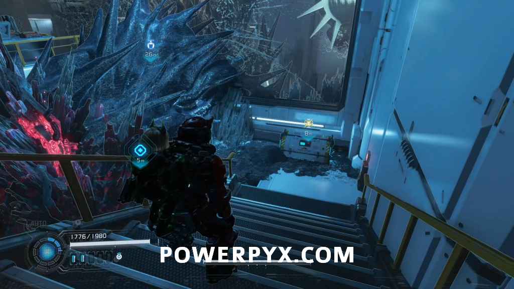 Mod 4 (Adrenaline Flood) – After the next fight in the caution zone take the lower door first and follow the path until you reach the Mod on the ledge you saw from below.