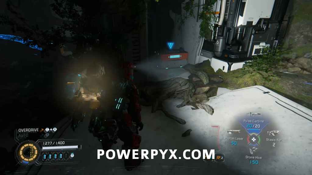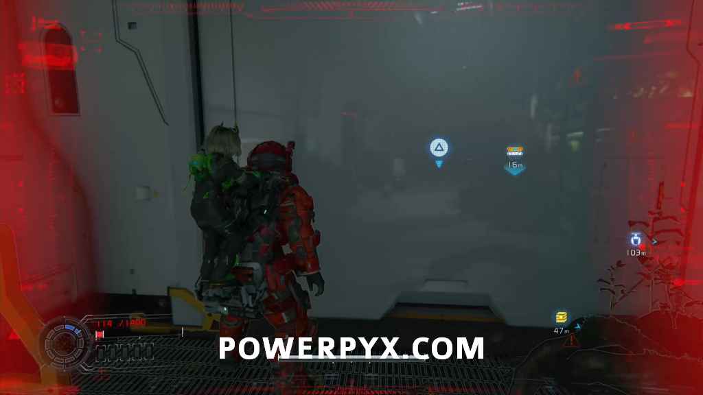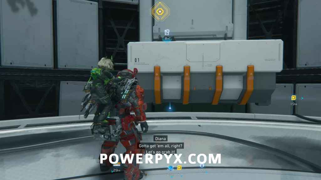 Suit Upgrade – While not a collectible you can interact with the computer here to upgrade your inventory so you carry both 2 of red and green weapons.