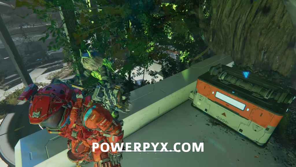 Safe Box 8 + Safe Box 9 [REQUIRES BACKTRACKING – Cleansing] – After defeating an orange bot jump down over the railing on your left towards a greenish area with a container which has the first box, the second one is in the pathway next to it which requires cleansing (automatic story unlock at Central Port 01 – Port Entrance).