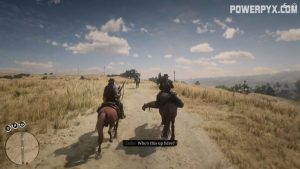Partway to Blackwater, you’ll see two riders riding towards you, then stop. Sadie comes to a stop, wondering who they are. Don’t even wait for her to respond, immediately go into Dead Eye and headshot them both.