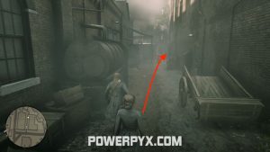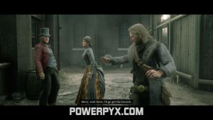 Eventually, we can see him around a corner, selling a brooch to some guy. It was a family heirloom and Mary is pissed and confronts him. While these two argue, Arthur tries to catch up with the buyer.