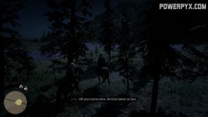 Marston gears up and rides out with the men to Hanging Dog Ranch. Take time during the ride to select the sidearms and long weapons of your choice from the wheel.