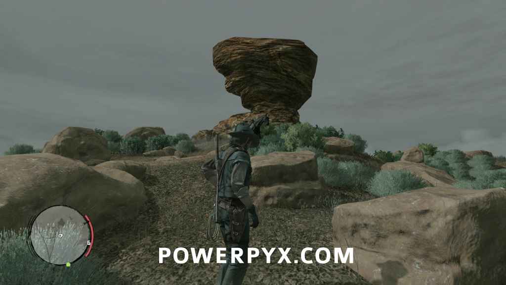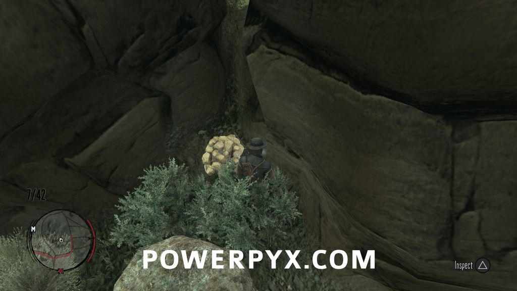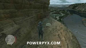 Again, John Marston benefits from a lazy treasure owner. The rock formation is Roca de Madera. From the rock, look to the southwest and you’ll see a path along the cliff just below the top. Follow that path all the way to the end to find the rock pile at the end.